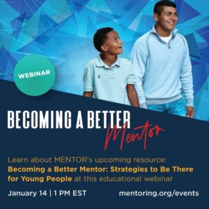 Becoming a Better Mentor: Strategies to Be There for Young People is MENTOR’s new resource designed for the everyday mentor and full of real-world advice. This free resource will benefit any adult looking for actionable ways to support a young person. Want to learn more about how adults can use this guide to make a difference in young people’s lives? Register for our upcoming webinar on January 14 at 1 pm!
